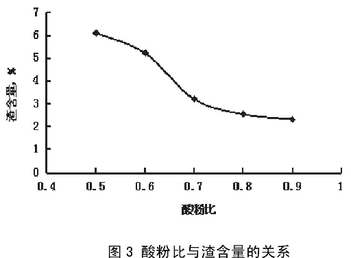 4.3酸粉比對(duì)渣含量的影響