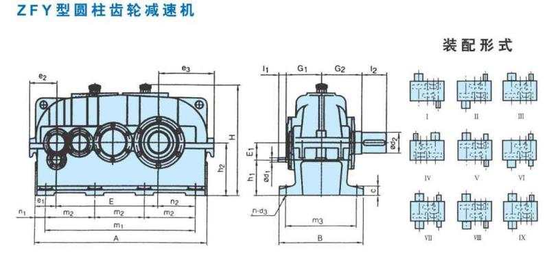 3、ZFY減速機的安裝尺寸見表